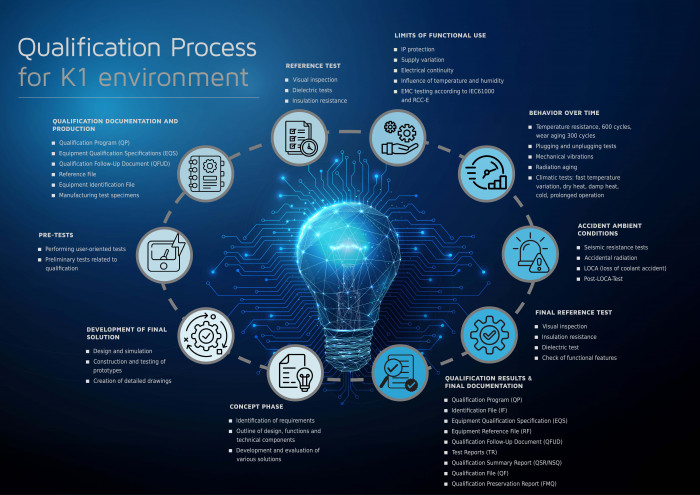 eddylab bietet neben der Entwicklung auch Produktqualifizierungen gemäß der RCC-E oder IEEE-Norm an und stellt damit sicher, dass die Messsysteme auch unter extremen Einsatzbedingungen zuverlässig funktionieren. Ziel der Qualifikation ist es, die Eignung für die spezifische, sicherheitstechnische Anwendung nachzuweisen. Die Qualifizierung besteht aus umfangreichen Tests, die die im regulären Betrieb sowie in einem Störfallszenario auftretenden Belastungen realistisch abbilden. Darunter fallen beispielsweise Temperatur-, Strahlungs-, Vibrations-, Feuchtigkeits-, EMV- sowie seismische und LOCA-Prüfungen. So wird die langfristige Einsatzfähigkeit und Sicherheit der Produkte gewährleistet. Um eine vollständige Qualifizierung zu gewährleisten, arbeitet eddylab mit einer Vielzahl renommierter Prüflabore zusammen, um alle erforderlichen Tests durchzuführen.